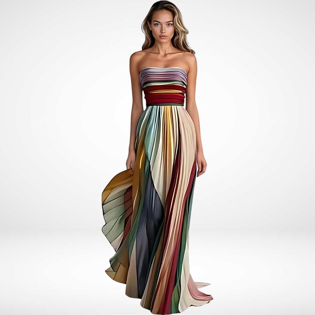 Bogumiła | Kolorowa sukienka z dekoltem w serek